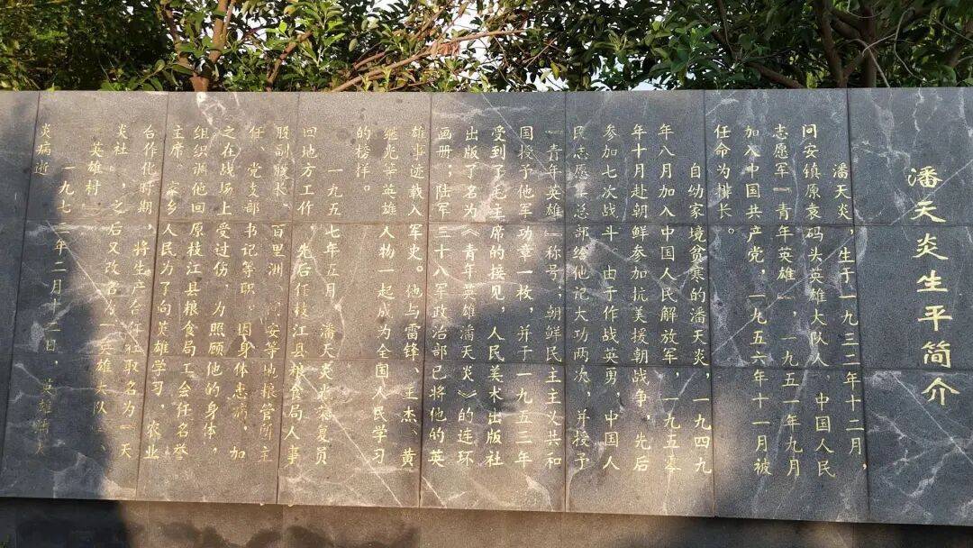 英雄已逝,精神永存。1991年3月,家乡人民怀着无比崇敬之情修建了这座“潘天炎纪念碑”。方正挺拔的碑身上,“战斗英雄潘天炎”七个大字在阳光下熠熠生辉。